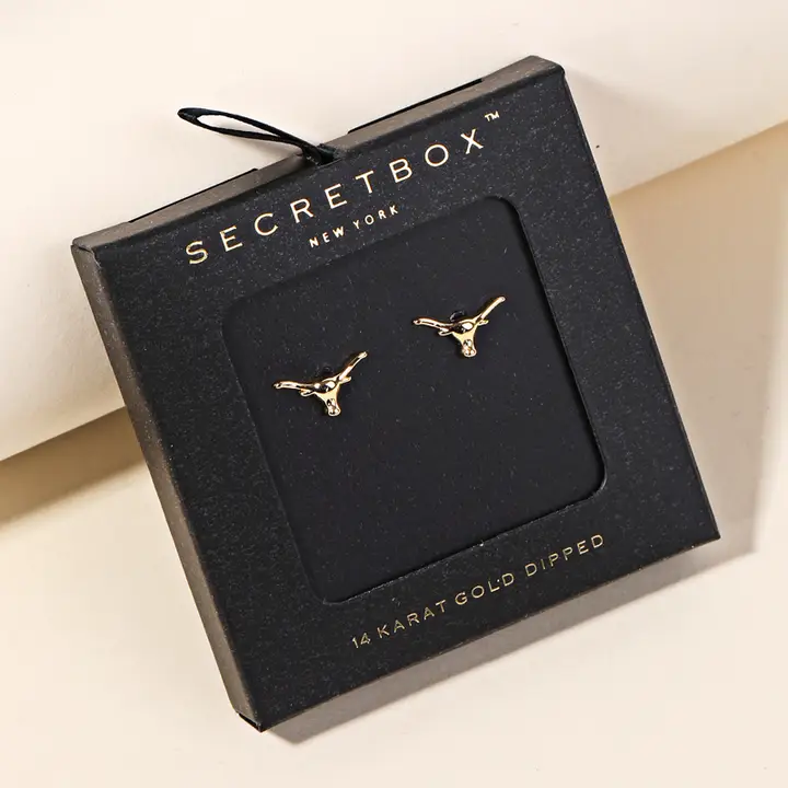 This piece is both timeless and contemporary, this pair of earrings offers a remarkable secret box gold dipped long horn earrings design. Perfect for adding a pop of color or texture to any outfit, this accessory is a must-have.