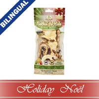 Nothin' to Hide chews are highly digestible alternative to rawhide. Available in a wide range of sizes and shapes, our wholesome chicken and delectable beef coated chews are sure to offer a safe, flavorful chewing experience for your pets. Contains 12 piece holiday assortment.