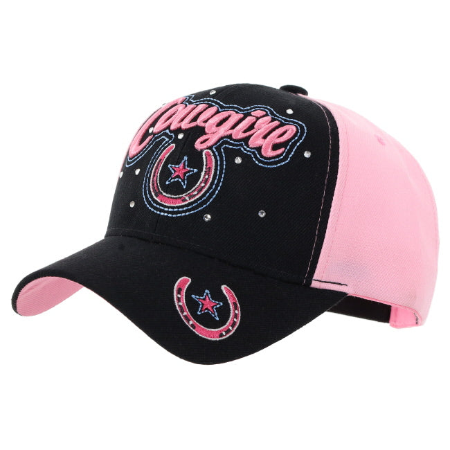 Get ready to ride in style with the "Cowgirl" Embroidered Pink and Black Baseball Cap, a perfect blend of feminine flair and rugged spirit.