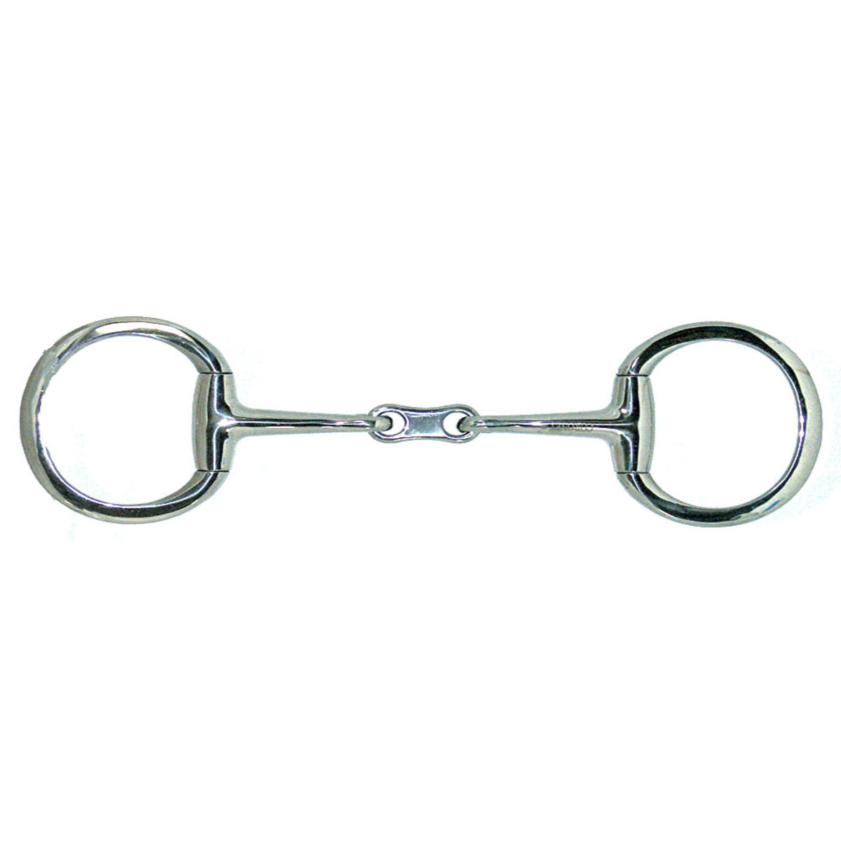 A very popular bit. Often adds a little extra control versus a regular jointed mouth. Some horses who open their mouths a lot like a French link. The construction contours to the mouth and allows extra tongue room.