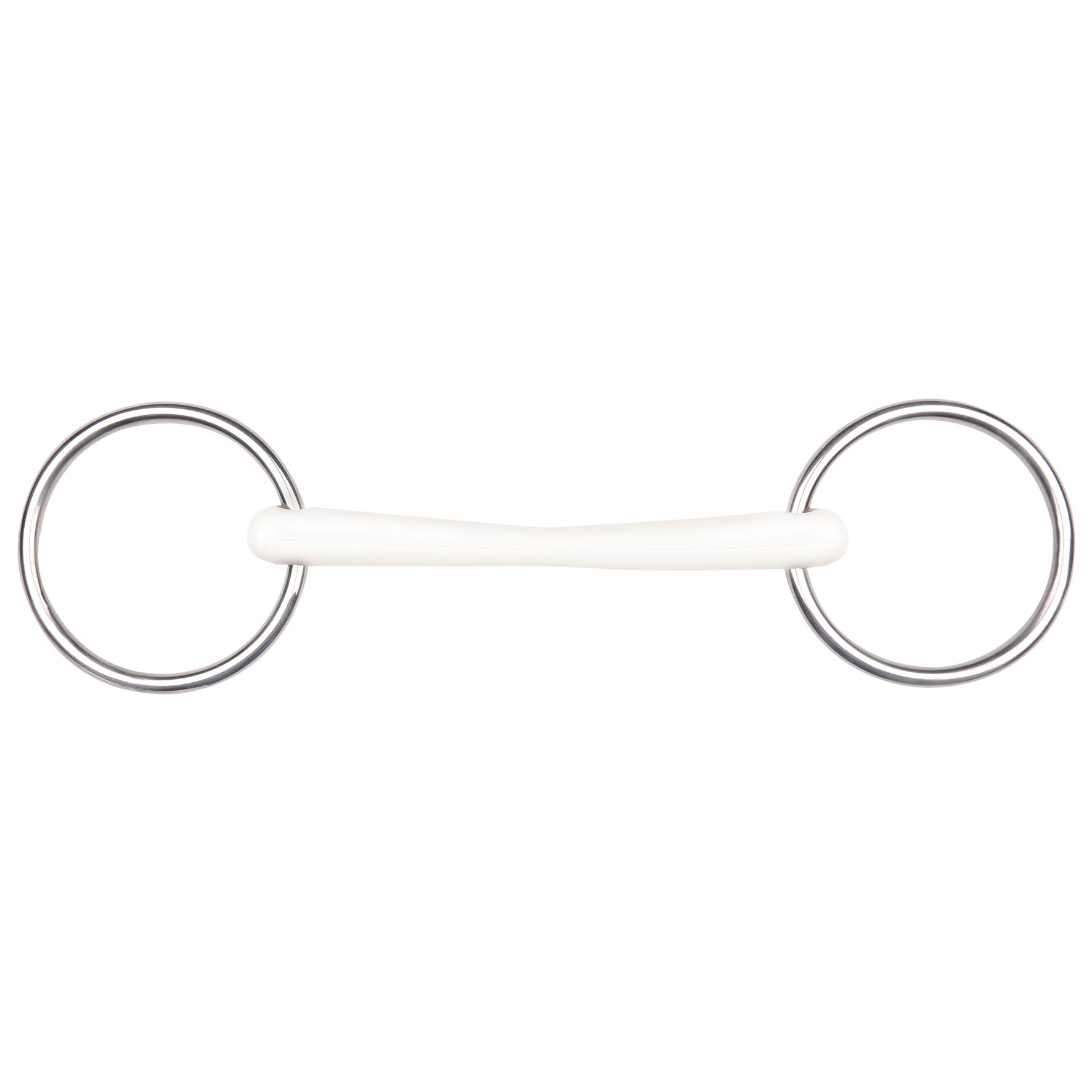 The high quality thermoplastic material is very well tolerated and stimulates chewing. Contact with the horse's mouth is refined and thus promotes the horse's contentment and readiness to perform. The rings are stainless steel, as is the internal steel core. Make sure that the bit is in the correct position so that it cannot be damaged by biting.