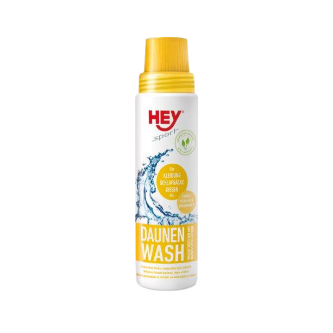 HEY SPORT® Down Wash preserves the properties of down, cleans and conditions. Consequently the down does not become brittle and cannot form clumps.