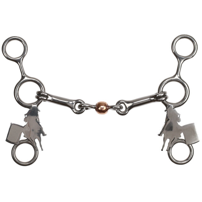 Designed with speed and control in mind, this bit features a smooth, broken snaffle mouthpiece with a dog bone and copper roller centerpiece, giving your horse something to play with and stay relaxed—especially when the adrenaline kicks in.