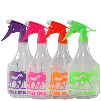 Clear PET bottle with assorted neon horse graphic and matching Model 300™ trigger sprayer. Assorted colours.