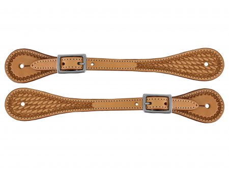 These spur straps are constructed of light oiled Argentina Cow Leather. Featuring a traditional basketweave tool with a single stitched edge. Stainless steel buckles. Great for the show ring, competition arena, trail, or everyday riding. Sold in Pairs.
