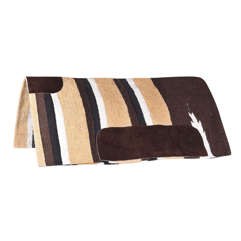 Used folded over, this western saddle blanket has leather patches for durability.